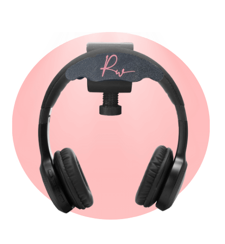 Suportes de headset produzidos em impressão 3D com PLA biodegradável, resistentes e sustentáveis.