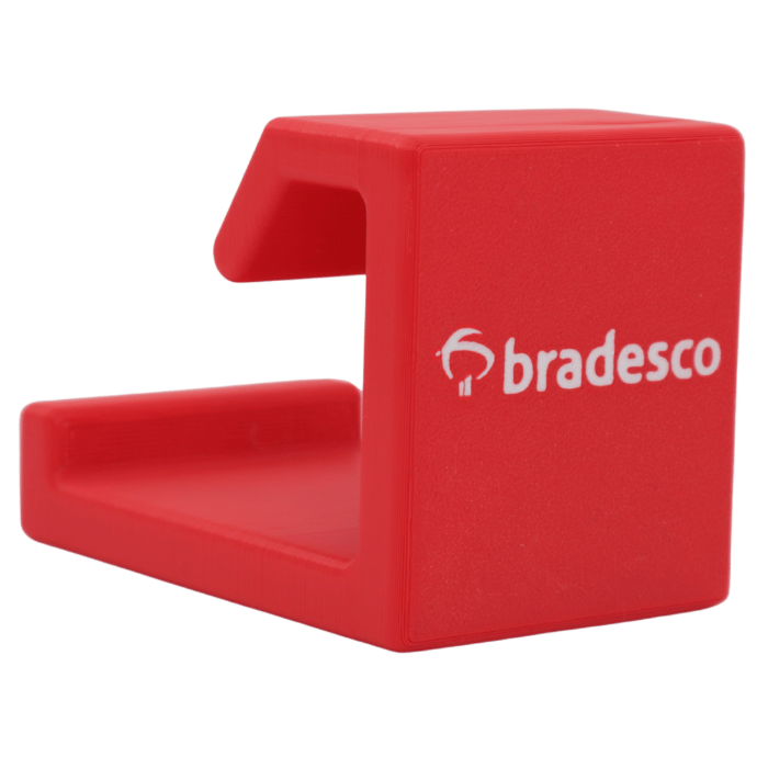 Apoios para celular em impressão 3D com PLA biodegradável, sustentáveis e funcionais. Com personalização total de formato, cor e design, destacam sua marca de forma criativa.