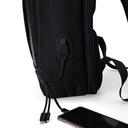 Mochila confeccionada em Nylon 23 litros com detalhes em couro sintético. Contém 5 compartimentos, sendo um bolso com faixa refletiva, divisórias internas para acessórios, bolso para tablet e notebook 15.6, bolso antifurto nas costas, bolso externo na lateral com elástico, suporte externo USB, alça para encaixe em malas de viagem, alças da mochila possuem bolsos integrados para suporte de óculos e cartões.